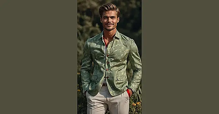 Check out this dude! He’s rocking an outfit that practically radiates good vibes and style points. With that super confident smile, it looks like he just aced a test he didn’t even study for, or maybe found a twenty-dollar bill in his old jeans. Who knew a navy blazer, usually reserved for stuffy events, could look so cool when paired with a wild, patterned shirt that’s practically a tropical vacation itself? He’s basically telling all other stylish mens outfits to step aside, because he’s here to show them how it’s done, effortlessly.