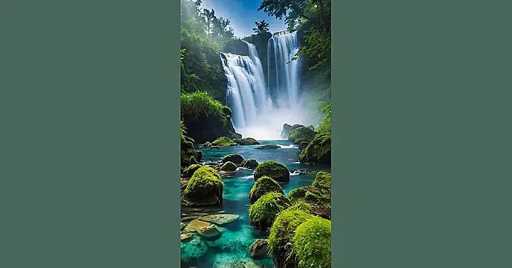 In another corner of the world, hidden deep within a lush, verdant forest, a majestic waterfall unveils itself like a well-kept secret. The sheer force of the water plunging into a turquoise pool below creates a misty veil that dances in the air like ethereal spirits. The verdant greenery that surrounds the spectacle seems to be alive with vitality, basking in the soothing embrace of the roaring cascade.