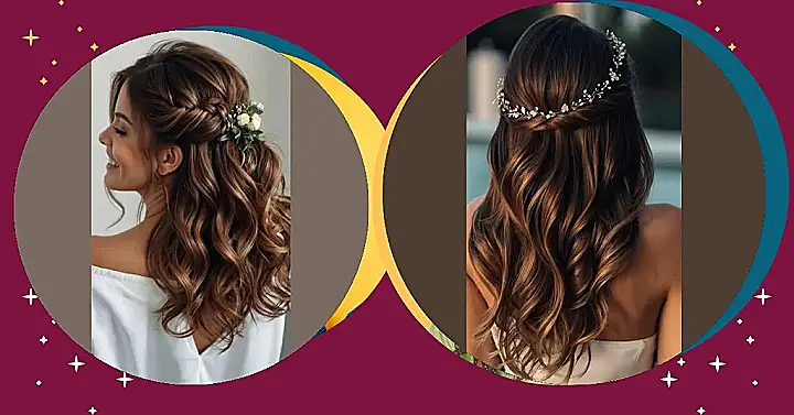 This hairstyle is like a fairytale come to life! It’s all about soft, romantic curls that are perfect for a special occasion. The braided crown adds a touch of elegance, while the delicate flowers make it feel like something out of a dream. This look is so dreamy and beautiful, it’s no wonder she’s smiling so big. You could even add some hairspray to hold those curls in place and make them even more dazzling!