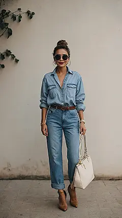 Looking at this super cool outfit, you might be thinking, “Could I really wear this to Fashion Week NYC 2025?” And the answer is a big, resounding YES! While some folks might try to pull off wild, gravity-defying outfits that look like they belong in a museum (or a circus), this denim-on-denim vibe says, “I’m effortlessly stylish, I’m comfortable, and I can actually hail a taxi without tripping.” Our fashionista here knows that sometimes, the best statement is one where you don’t need a team of assistants just to walk.