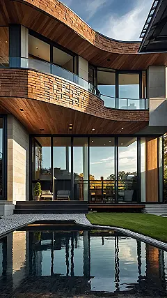 This renovated house isn’t just a home; it’s a modern masterpiece! Look at those curves – it’s like someone took a super cool, stylish wave and turned it into a house. The wood and stone details are seriously posh, and those huge windows give you the feeling you could just reach out and touch the trees. It’s got that “wow” factor that makes you want to instantly move in and host a super stylish pool party.