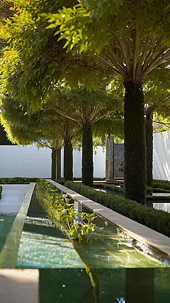 This garden is like something straight out of a movie! With those perfectly lined-up trees and that super cool reflecting pool, it looks like the ultimate chill spot. Imagine strolling through here, feeling like royalty, while secretly hoping you don’t trip and fall into the water.