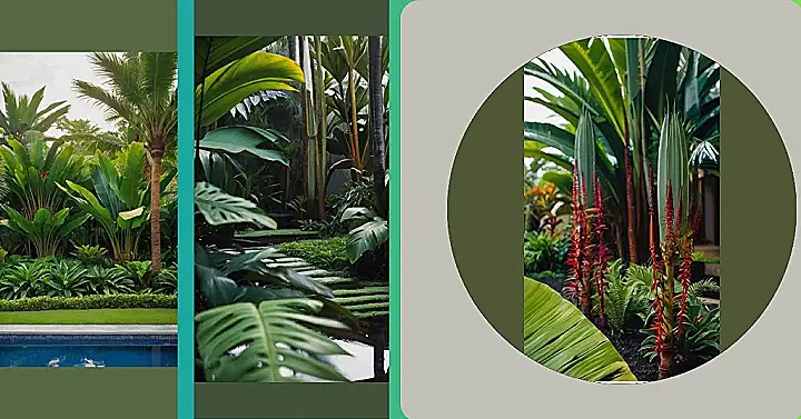 Imagine yourself lounging by the pool on a sunny day, surrounded by these beautiful plants. It would be the perfect place to escape from the stress of everyday life and just unwind. The design is all about making you feel calm and happy, which is exactly what a tropical paradise should do.