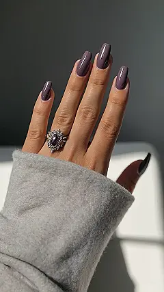 The burgundy color is just the right amount of bold, like a statement piece you can’t take your eyes off of. It’s like the nails are saying, “Hey, I’m here, I’m fierce, and I’m ready for anything!” You wouldn’t even need to do anything fancy with those nails. Just a little swipe of red, a quick dry, and you’re good to go! And that ring? Don’t even get me started. It just adds that extra touch of glam, like the cherry on top of a perfect sundae. It’s all about balance, and these nails have it in spades.