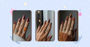 The burgundy color is just the right amount of bold, like a statement piece you can’t take your eyes off of. It’s like the nails are saying, “Hey, I’m here, I’m fierce, and I’m ready for anything!” You wouldn’t even need to do anything fancy with those nails. Just a little swipe of red, a quick dry, and you’re good to go! And that ring? Don’t even get me started. It just adds that extra touch of glam, like the cherry on top of a perfect sundae. It’s all about balance, and these nails have it in spades.