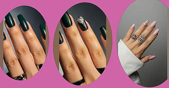 These nails are giving me serious green with envy vibes! That emerald green polish is like a fancy party dress for your fingertips, and the sparkly gem on top? It’s like the cherry on top of a delicious, sparkly sundae! I can’t decide which nail type is my favorite, they are all so stunning. Maybe you could try this style at home, or better yet, go to a salon and get your nails done by a professional!