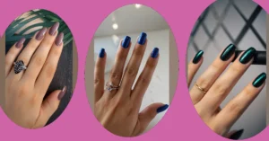 These nails are giving major autumn vibes! Just like the leaves changing colors, these nails are a mix of gold, pink, and purple with some shimmery sparkle. It’s like the perfect combination of a classic French manicure and a cozy sweater, ready for pumpkin spice lattes and crisp fall air.