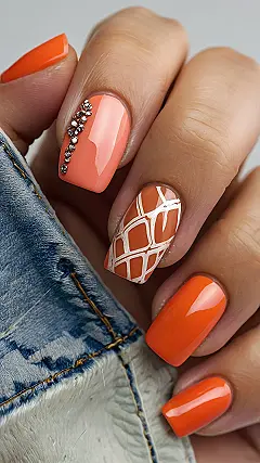 These nails are basically spring break in a bottle! Seriously, ditch the basic pastels (just kidding, pastels are cool too) and go bold with this bright orange. The cute rhinestones add a touch of glam, while the geometric design makes it look like you’re ready to conquer the world, one perfectly manicured hand at a time.