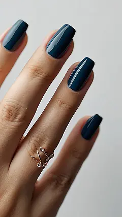 This picture shows off some seriously stylish nails. That dark blue nail paint is totally on-point, making a statement without being too over-the-top. It’s like the perfect outfit for your fingertips ‚Äì classy, cool, and just a little bit mysterious. Imagine walking into school with these nails, all the attention will be on you!