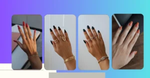 Having nails this fabulous means you’re officially ready for anything, even if ‘anything’ just means carefully picking up a single chip without breaking a nail. You can almost imagine them sparkling under the lights while you’re waving hello, or just casually resting on your knee, like in the picture, showing off that awesome little ring against the cool blue fabric. Just remember, with great nails comes great responsibility… responsibility not to accidentally scratch yourself while trying to open a soda can. But hey, it’s a small price to pay for looking this chic!