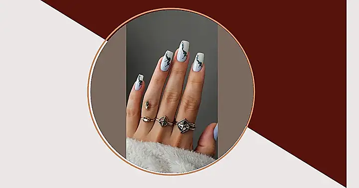 These nails are totally giving us autumn vibes! The rich brown polish is perfect for the season, and the gold accents add a touch of glam. We bet these nails are so strong, they could totally handle a scorpion’s sting! But honestly, the best part of this look is the white nail with brown lines on it. It’s like a mini masterpiece on your finger! Don’t you wish you could draw as well as this nail artist?