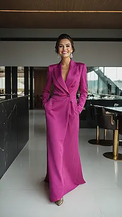 When that wedding invitation drops, do you instantly picture a frilly dress or maybe a suit that feels a bit… well, expected? Get ready to ditch the usual, because this incredible fuchsia blazer-dress situation is the ultimate glow-up for any wedding guest. It’s super chic, totally bold, and frankly, you look like you’re about to accept an award, not just witness someone else’s big day! Plus, those epic pockets mean you can confidently stash your phone for post-ceremony selfies or just look incredibly cool while holding your pose.