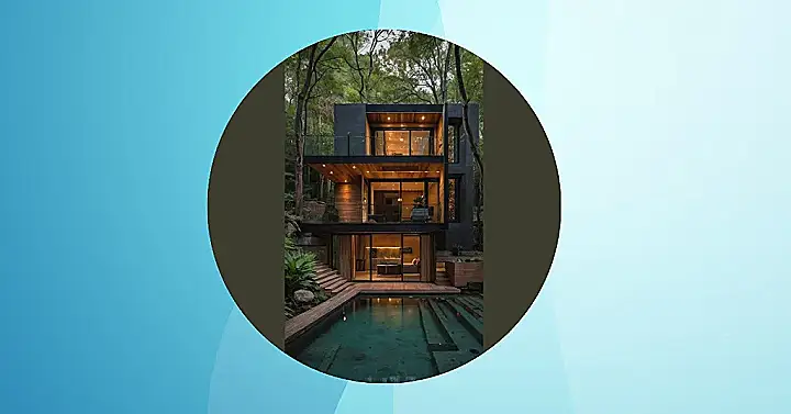 **Paragraph 1:** Check out this amazing house! It’s like someone took a treehouse dream and supercharged it with modern architecture. Imagine waking up, looking out at the lush green trees right outside your window – basically, a nature-themed reality show but way cooler. This “nature house design” blends right into the woods, using dark colors outside that make the warm, wooden interior glow like a cozy campfire. You’d never even guess that a super sleek, modern swimming pool was just steps away from the living room!