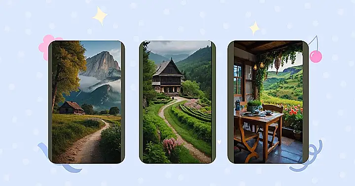 It’s a picture-perfect scene, isn’t it? You could totally imagine walking down that path, maybe with a basket of snacks or a book to read. The cabin looks so inviting, you’d want to sit on the porch, sip some hot cocoa, and watch the clouds drift by. It’s a place where you could escape the hustle and bustle of life and just relax, Maybe even catch a glimpse of a friendly gnome or two peeking out from behind the trees!