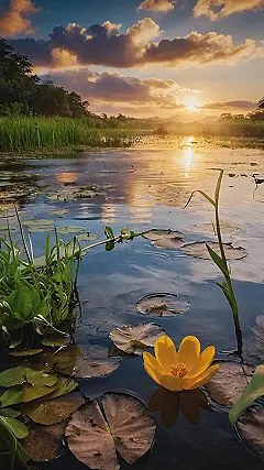 Imagine a picture-perfect sunset. The sun is dipping below the horizon, painting the sky with shades of orange, pink, and purple. You’re standing by a calm, still river, surrounded by lush greenery, and the air is filled with the sweet scent of wildflowers. And right there, floating gracefully on the water, is a bright yellow flower, like a little piece of sunshine. Now, picture a frog leaping from lily pad to lily pad, chasing after a juicy bug, and you’ve got yourself a truly amazing moment.