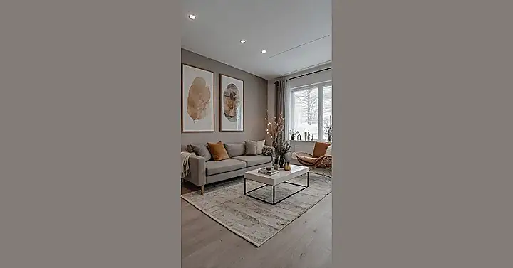 This living room is so chill, it practically screams, “Welcome to my super cozy, adulting space where chaos is banned!” With its calm grey sofa and light wood floors, it’s basically the poster child for Nordic style, showing off how keeping things simple makes a room feel massive and super inviting. It’s like they said, “Let’s make a room so effortlessly cool, even our clothes will want to fold themselves!” Seriously, this isn’t just a room; it’s a giant, stylish hug waiting to happen.