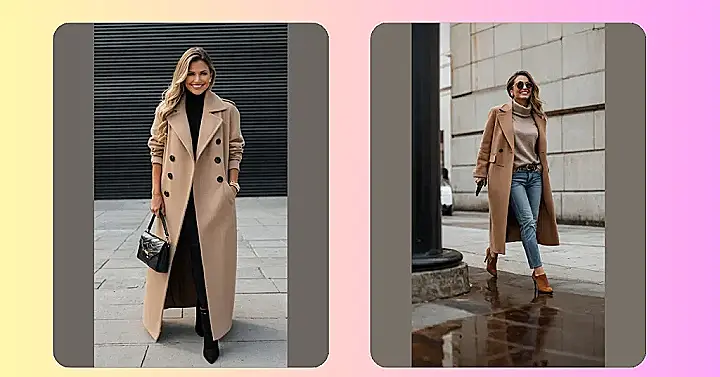 **Paragraph 1:** Hey there, fashion-forward friend! November’s chilly breeze got you thinking about cozy outfits? This picture is *total* November vibes. Check out that gorgeous camel-colored coat! It’s like a warm hug, but way more stylish. Imagine strolling through fallen leaves, feeling super comfy in your black jeans and turtleneck, and then BAM! You throw on this fabulous coat and suddenly you’re ready to conquer the world (or at least your history test). The chic black purse and boots just add the perfect finishing touch—it’s casual cool all the way!
