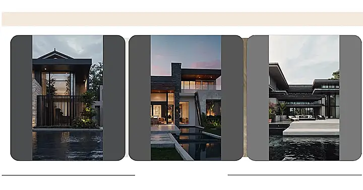 This house is like a dream come true! It’s got that sleek, modern look with all the dark lines and big windows, but it also looks super comfy. Imagine lounging on those plush cushions by the pool, soaking up the sun and feeling like a total VIP. This place is definitely giving off “I’m too cool for school” vibes, but in the best way possible.