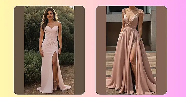 This bridesmaid dress is seriously stunning! Imagine yourself gliding down the aisle, not as the bride (unless you’re secretly planning a surprise elopement!), but as the best-dressed bridesmaid ever. That gorgeous dusty rose color? It’s like a hug for your eyes, and the silky fabric looks so comfortable you might just want to wear it every day. Plus, that high slit? It’s just the right amount of sass and sparkle. You’ll be ready to steal the show, or at least the dance floor!