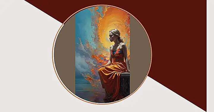 Look at this picture! This person is just trying to have a peaceful moment, probably wondering if they left the stove on, while their background is basically a sky-fireworks show made of oil paint. Seriously, it looks like the artist spilled all the warm colors and decided to just go with it, creating a swirling vortex of awesome drama. It’s like her backdrop is screaming for attention, saying, “Hey, look at these brushstrokes! Aren’t I just the wildest oil painting background you’ve ever seen?”