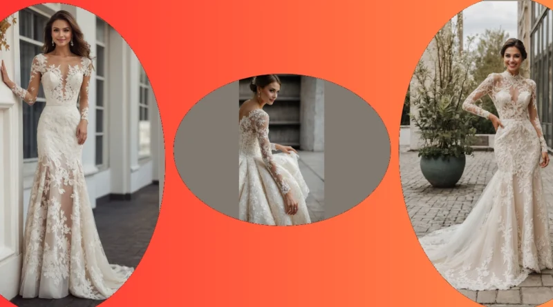 So, you know those dresses that make you feel like you just stepped out of a fairytale, but also kinda like a fancy, walking art exhibit? This ivory lace wedding dress is *that* dress! With all those incredible lace patterns and the sheer parts, it’s basically saying, ‘Yeah, I’m elegant, but I’m also here to party (carefully, because tripping is not an option).’ It’s so detailed, you might need a magnifying glass just to appreciate every stitch. Plus, the way it hugs and then flares out? Totally mermaid vibes, if mermaids traded their tails for stunning long sleeves.