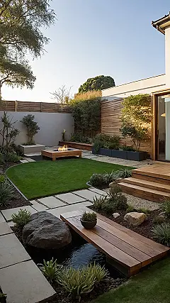 And check out the sweet features they packed into this space! There’s a little pond with a bridge that’s begging for you to strike a pose on it, plus a fire pit that looks perfect for gathering ’round when the sun goes down, maybe even attempting to make s’mores without setting your eyebrows on fire. It shows that even tiny spaces can be epic hangout zones, proving small courtyard gardens are seriously underrated spots for awesome times and definitely not just boring patches of dirt.