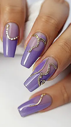 These aren’t just purple nails; they’re a whole vibe! Seriously, these nails look like royalty went to a spa. The shiny gold details make the purple pop, like a secret handshake between sophistication and fun. It’s like they’re saying, “Yeah, I woke up like this… fabulous!”