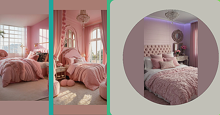As soon as you step into your bedroom, a soft hue envelops you, painting everything in a warm, rosy glow. The walls are adorned with delicate floral patterns that seem to bloom right before your eyes, while the silky pink curtains sway gently in the breeze, inviting the outside world to dance in. Your bed, adorned with plush pink pillows and soft, fluffy blankets, beckons you to sink into its comforting embrace and forget all your worries. This bedroom is your own pink paradise, a sanctuary of sweetness and light where every corner whispers tranquility and beauty.
