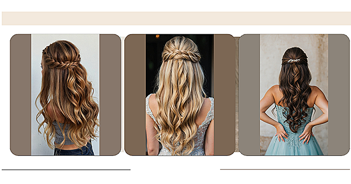 As the excitement of prom night approaches, there’s an undeniable air of anticipation surrounding the perfect hairstyle to complement your elegant attire. Consider the enchanting allure of a half up half down hairdo, where sophistication effortlessly meets a touch of whimsy. Picture your locks styled in a captivating half-up twist, with delicate braids weaving through strands of cascading curls. This chic yet playful look promises to frame your face beautifully, offering a mix of elegance and charm that is sure to turn heads as you make your grand entrance.