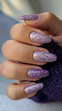 And let’s be real, wearing nails this detailed means you’ve officially leveled up your style game. How do you even text your friends about the latest gossip or grab snacks without feeling like your fingers are too important for such mundane tasks? Itβs a hilarious challenge, for sure! These aren’t just for showing off; they’re an instant mood booster, perfect for when you want to feel extra confident and cool. So go ahead, rock that purple nail art and let your hands do all the talking, probably about how awesome you are and how much you love intricate designs!