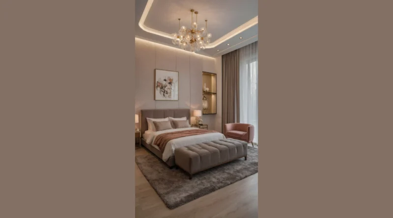 Step into this bedroom, and you might accidentally merge with the walls – but in the best, coziest way possible! This isn’t just a room; it’s like someone dipped it in a giant vat of warm, fluffy marshmallow and soft rose petals, creating a “moody color drenching” effect that practically hugs you. Forget bright, harsh lights; here, everything from the plush carpet to that dreamy headboard is singing a lullaby of calm. You could probably wear pajamas that match the decor and achieve peak camouflage, making it impossible for anyone to find you when chores need doing. It’s the perfect spot for deep thoughts, even deeper naps, or just staring at that amazing chandelier wondering how many tiny bubbles it took to make it sparkle like that.