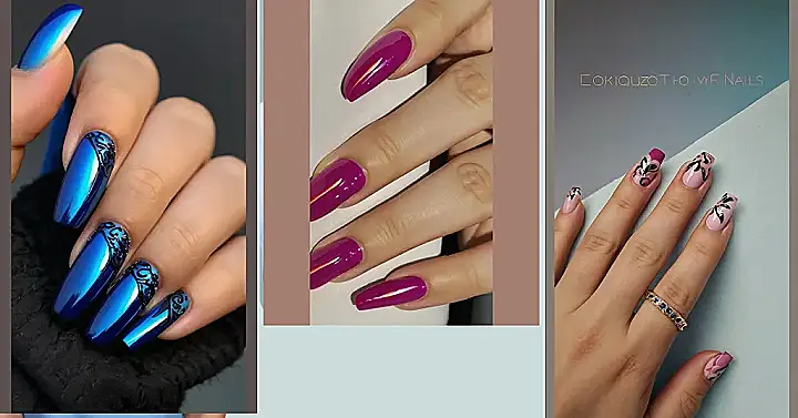 These long, stylish nails are definitely going to be a trend in January 2025, or maybe even sooner! That shiny blue color is super trendy, and the dark design is a perfect winter touch. You could totally rock these nails to a party, to school, or even just hanging out with friends. They’re so striking, they’re practically guaranteed to be a conversation starter. Plus, the color is so rich and intense, it’s almost like wearing tiny pieces of the night sky on your fingertips!