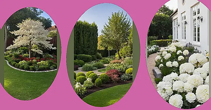 If gardens were trying to win awards for colour coordination, this one would definitely be on the podium for Best Use of Green and White. The vibrant green makes everything else pop, especially those bright white blossoms on the tree. It feels cheerful and clean, like the garden just finished tidying its room and is really proud of itself. It’s proof that sometimes, sticking to a simple, elegant colour combo like green and white can make a place look absolutely brilliant and inviting.