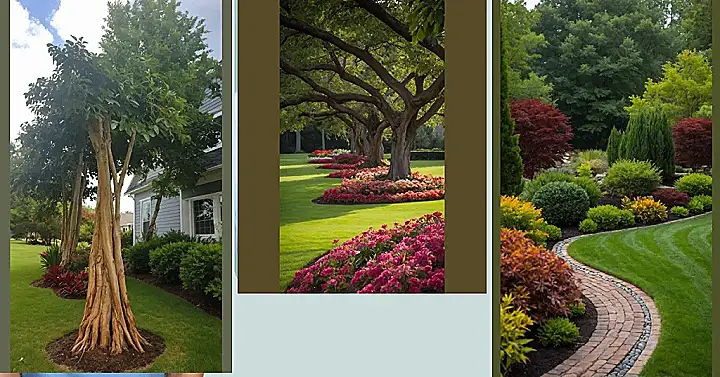 Thinking about the whole yard, like the picture shows, landscaping is really just about making your outdoor space look like it knows what it’s doing. It’s not just throwing random plants around; it’s like designing a cool scene. You’ve got your big trees being the main characters, but then you add the supporting cast around the base – those smaller bushes, colorful flowers, and neat edges – and suddenly, your yard is looking less like a forgotten field trip stop and more like a magazine cover. It’s all about arranging things so they look good together, making your place the spot everyone wishes their yard could be, maybe minus the squirrel drama.