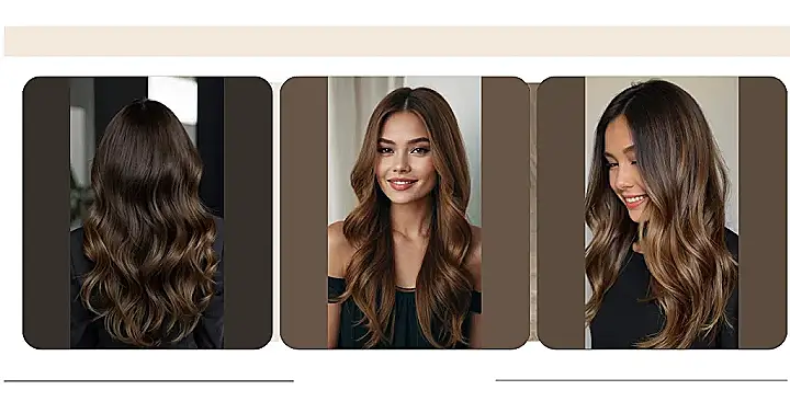 This hairstyle is like a dream! Imagine the feeling of running your fingers through hair as soft as silk. That’s the kind of luxurious feel this hairstyle gives off. It’s like a waterfall of glossy dark brown locks, with just a hint of caramel swirling through, making it look extra dreamy.