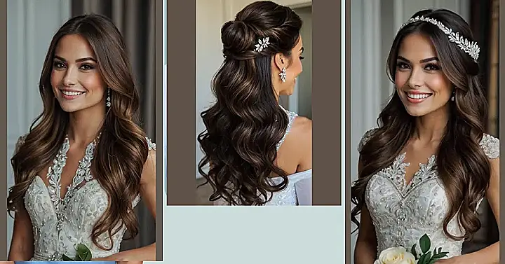 Getting ready for your big day doesn’t have to be a total hair-raising experience! This half-up style is perfect if you can’t decide whether to rock the full Rapunzel or tie it back a bit. It’s like saying, “I’m sophisticated, but also ready to dance!” Plus, it leaves room for a super-sparkly tiara (because, let’s be real, when else are you gonna wear one of those?).
