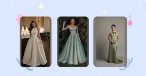 Wow, talk about a dress that makes you feel like you just stepped out of a royal painting! This one is giving us major fashion envy with its dreamy, puffy skirt that looks like a cloud and that sparkly belt that probably has its own zip code. It’s got that fancy, over-the-top sparkle that makes you think of ‘rococo’ style, like it belongs in a palace party where everyone just looks incredibly fabulous and maybe needs a wide door to get through.