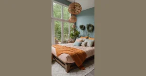 Stepping into this room is less like a typical living space and more like you’ve accidentally found the secret headquarters for a plant-based uprising. These room plants are absolutely everywhere! They’re dangling dramatically from the ceiling like they’re in a spy movie, standing tall by the couch like leafy bodyguards, and even chilling on the coffee table next to snacks. It feels like they’re slowly but surely staging a green takeover, demanding more sunlight and maybe a personal sprinkler system.