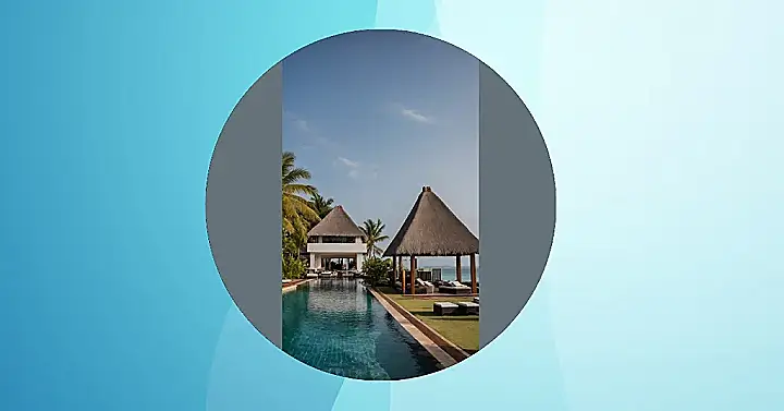 Look at this place! It’s like a secret hideout for someone incredibly cool, or maybe a super-fancy treehouse for adults, but way better. With those amazing straw roofs stacked up like a giant, super-chic wedding cake and surrounded by more palm trees than you can count, this tropical hotel practically screams ‘come hang out!’ You’d probably spend half your day just trying to decide which awesome view to soak in – the endless sparkly ocean or that dramatic cliff with what looks like a hidden cave. It’s definitely a level up from your usual school hallway scenery!