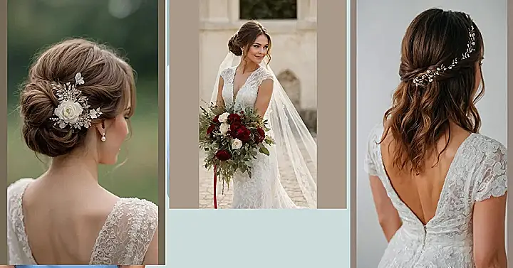 Of course, an updo isn’t the only move! Maybe you dream of flowing waves that make you look like a mermaid who just found her prince, or a half-up, half-down style that says, ‘I’m fancy but I also like to party.’ Just remember to pick a style that won’t give you a headache by noon, because nobody wants to be adjusting bobby pins during their first dance. Finding the right bridal hair idea means choosing something that lets you shine brighter than the disco ball at the reception – and allows you to eat cake without getting hair in it!