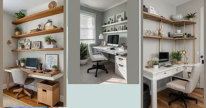 This home office design looks like something straight out of a Pinterest board! Those wooden shelves are practically begging for a mini plant collection, and let’s be honest, they’re probably holding up a few textbooks and maybe even a hidden stash of snacks. This space is like the adult version of a fort, except instead of pillow fights, you’re conquering homework or finally writing that short story you’ve been putting off.