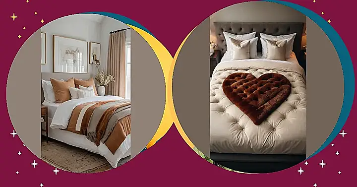 Forget trying to sneakily arrange a few dozen petals yourself; this setup looks like a professional romance wizard got involved, complete with those fancy headboards and fluffy grey pillows that probably cost more than our entire gaming budget. This isn’t just a bed; it’s a cozy fortress of love, designed to make anyone feel like they’ve stepped into a rom-com movie set. You can practically hear the soft, dreamy music playing! While it might not have the classic rose petals everyone expects, the plush heart and those adorable little red pom-poms are definitely giving “main character energy” to this romantic bedroom. It’s proof that sometimes, the best decor surprises you with something even softer and squishier than you imagined.