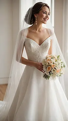 Just look at her! That huge smile, the gorgeous bouquet of soft roses, and that super long veil flowing behind her – she’s basically glowing. You can tell she feels like a total princess, maybe even a queen, in that incredible gown. We just hope she’s got a sturdy pair of sneakers hidden under that elaborate skirt for when the dancing starts, because trying to bust a move in a “royal wedding dress” like that without tripping over your own fabulousness would be a real challenge! But hey, for a day looking this amazing, it’s probably worth it.