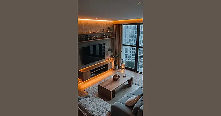 And that massive TV? It’s basically begging you to start a new series marathon with your squad, or maybe finally beat that level in your favorite game. You could probably watch a whole season of anything without your eyes getting tired in this ultimate chill space. With the cool plant in the corner and those perfectly placed decor items on the shelves, it’s like your living room decided to get a glow-up and become the most popular hangout spot, making all other rooms feel a little bit jealous. Good luck trying to get anyone to leave once they’re in here!