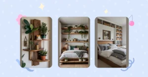 This isn’t just about books, though! Those stylish vases and a quirky lamp add a touch of personality. It’s the kind of shelving that says, “I’m organized, I’m stylish, and I’m not afraid to show it off!” So go ahead, fill it with your books, plants, and knick-knacks – and let your bedroom corner shine with your amazing style. It proves that even a small space can be a big personality statement!