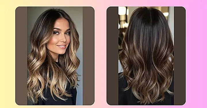 This hairstyle is like a summer vacation for your hair! Imagine walking on a beach, feeling the sun on your face, and BAM! Your hair looks just as gorgeous as the golden sunset. Those lighter blonde highlights are like tiny sunbeams woven throughout rich, dark brown strands – a total beach babe vibe without even needing a trip to the coast. It’s totally dreamy and perfect for anyone wanting low-maintenance glamour.