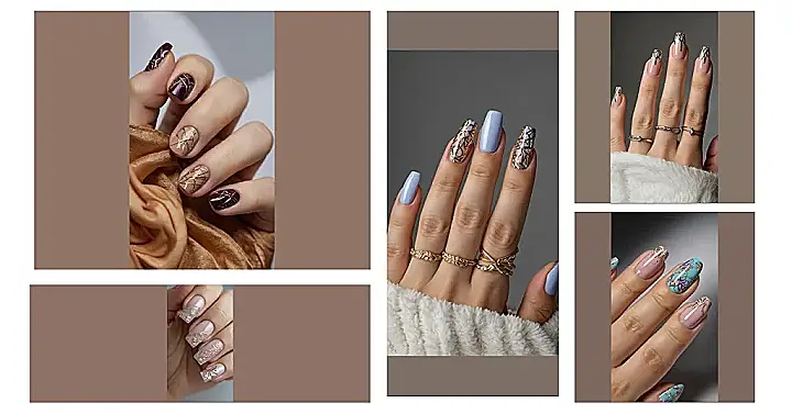 Pairing these awesome nails with a fluffy sweater and some sparkly rings? Genius! It’s like your hands are all bundled up and ready for those crisp autumn days, looking super trendy while doing it. These fall nail designs prove that you don’t need bright orange leaves to rock the season; sometimes a little dark elegance and metallic shine are all you need to make a statement. You might even find yourself constantly admiring them instead of paying attention in class – hey, it happens!