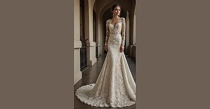 Seeing a dress this gorgeous is basically a real-life filter. This ivory wedding dress has lace so detailed, it looks like a spiderweb spun by a fashionista arachnid. Seriously, the way it catches the light and makes everything look magical? Pretty sure this dress comes with a built-in ‘you look amazing’ button. It’s the kind of outfit you wear when you want everyone to stop scrolling and stare… in a good way!