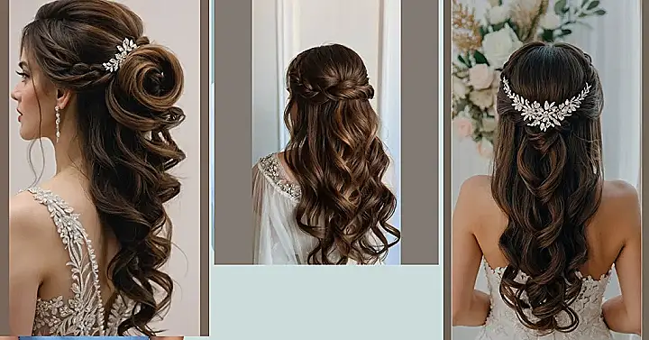 Think of it as a half-up, half-down party in your hair! The top part is all fancy and pulled back, while the rest is ready to rock the dance floor. You can even totally fake it till you make it with some curling iron action. Plus, this hairstyle is super versatile – it works whether you’re rocking a sleek dress or something a little more bohemian. Now go forth and conquer that wedding, looking effortlessly fabulous!
