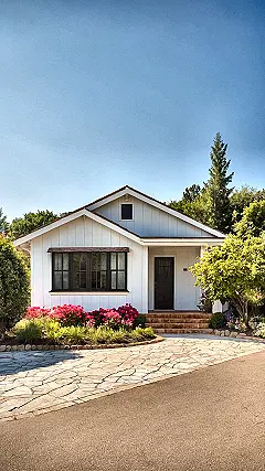 This adorable house proves that when it comes to design, small can be super mighty! Just look at those vibrant pink flowers practically throwing a party in the front yard, perfectly framing that crisp white siding and dark, welcoming door. You almost expect a friendly squirrel to pop out and offer you a tiny acorn-sized cup of tea. It’s the kind of place where you wouldn’t need a map to find your way to the kitchen for a midnight snack – less walking, more munching!